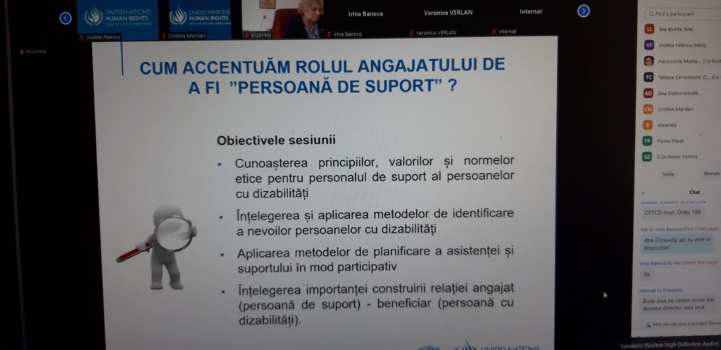 În cadrul evenimentului de astăzi, desfășurat cu participarea reprezentanților Oficiului ONU pentru Drepturile Omului în Moldova, Agenției Naționale Asistență Socială, managerilor centrelor de plasament pentru persoane cu dizabilități din gestiunea Agenției a fost prezentat programul de instruire ,,Drepturile omului și dizabilitatea”, elaborat cu suportul OHCHR.
