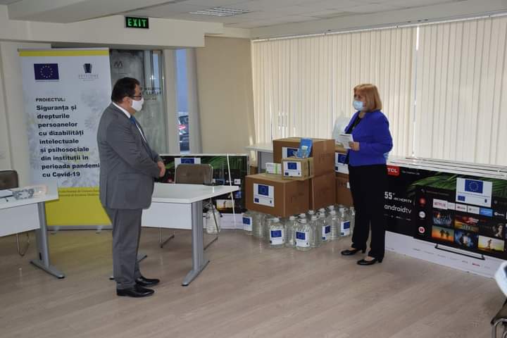 Uniunea Europeană a donat echipament de protecție individuală pentru persoanele cu dizabilități intelectuale și psihosociale și angajații din șase instituții rezidențiale din gestiunea Agenției Naționale Asistență Socială.