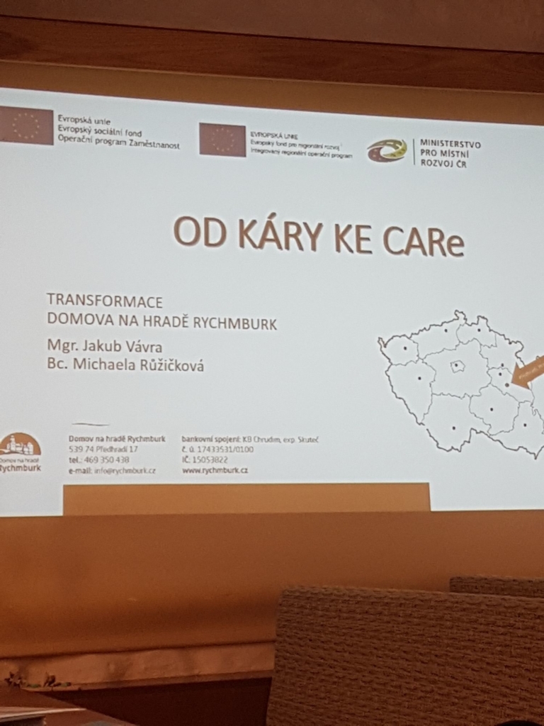 Pornind de la ideea că, sprijinul oferit în comunitate creează condiții mai bune pentru aplicarea drepturilor omului, pentru protecția și realizarea lor, decât cele din mediul instituțional, colegii cehi au prezentat în practică implementarea procesului de dezinstituționalizare a două mari centre rezidențiale din regiunile: Vysočina și Předhradí, fiind vizitate 14 locuințe protejate/ case comunitare, centre de zi,  2 cafenele, ce au ca angajați persoane cu dizabilități mintale.